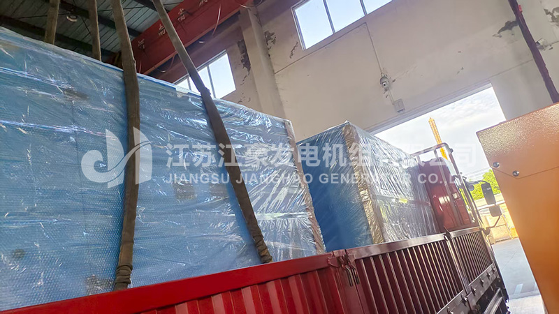 两台150kW康明斯动力柴油发电机组发货,我公司工程师对机组进行了全面的出厂前检测调试后,各项指标符合国家标准,下图为机组出厂现场