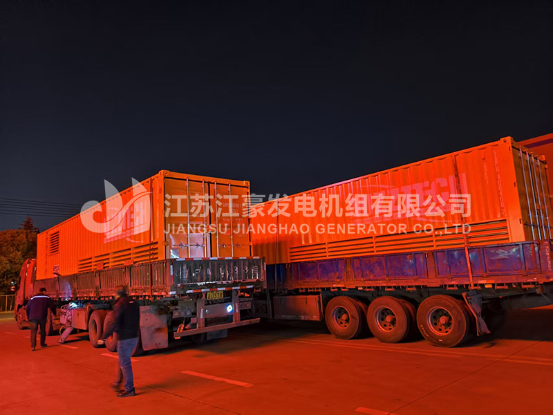 三台2000kW三菱集装箱式柴油发电机组发货,我公司工程师对机组进行了全面的出厂前检测调试后,各项指标符合国家标准,下图为机组出厂现场